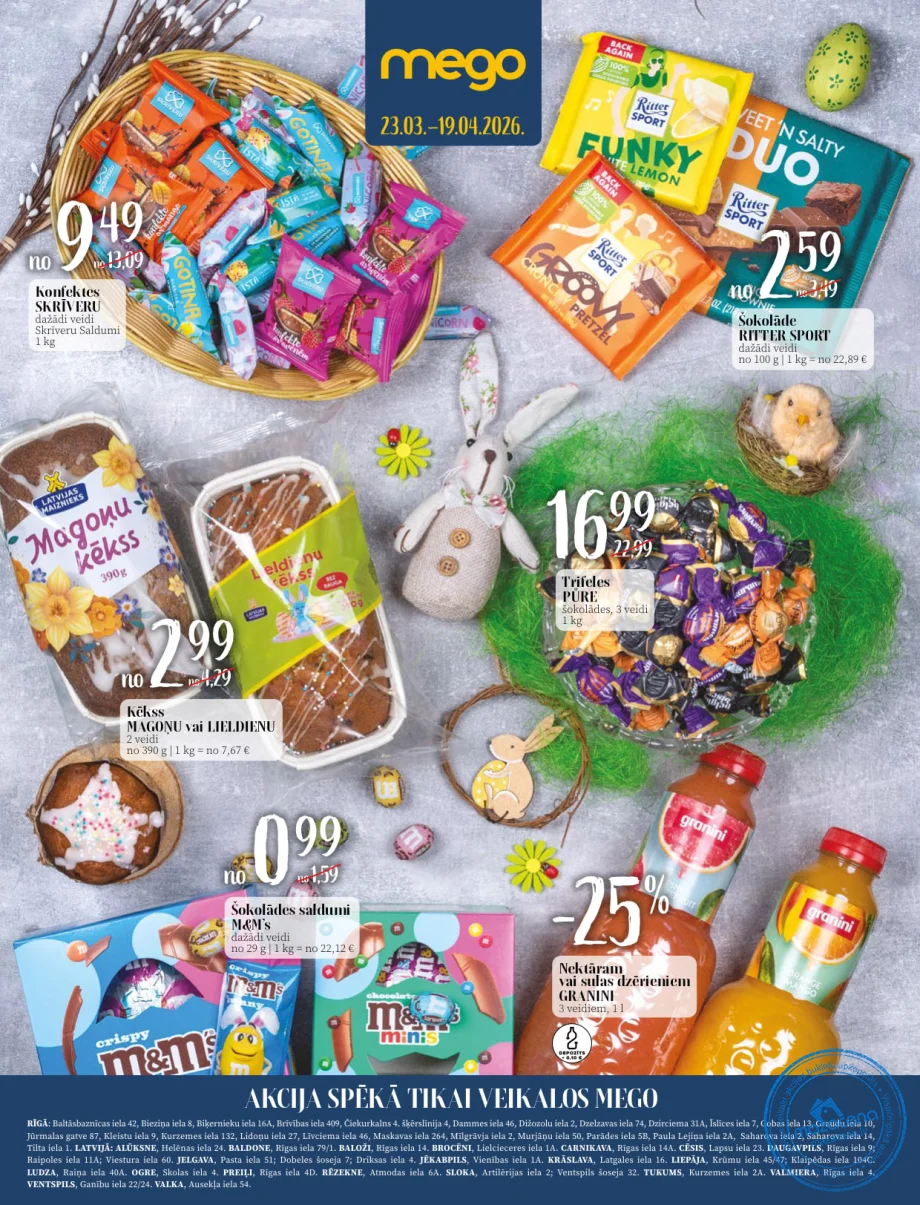 Mego svētku buklets Spēkā: no 23.03.2026 līdz 19.04.2026 Jaunums 🔥 spēkā no 23.03.2026 līdz 19.04.2026. 0 0 Komentēt (0) Pieslēgties ar Google vai Nosūtīt komentāru