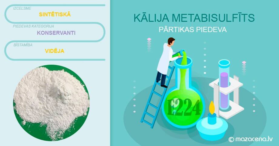 Pārtikas piedeva E224 Kālija metabisulfīts ir sintētisks pulverveida baltas krāsas konservants ar raksturīgu sēra dioksīda smaržu. Sakarā ar ķīmisko īpašību līdzību piedeva ir aizstājama ar nātrija metabisulfītu.