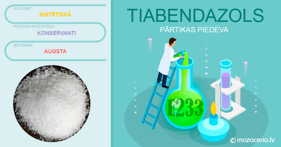 Pārtikas piedeva E233 Tiabendazols — sintētisks konservants kristāliska pulvera formā baltā krāsā un bez smaržas. Piedevu izmanto kā pretparazītu un fungicīdu līdzekli.
